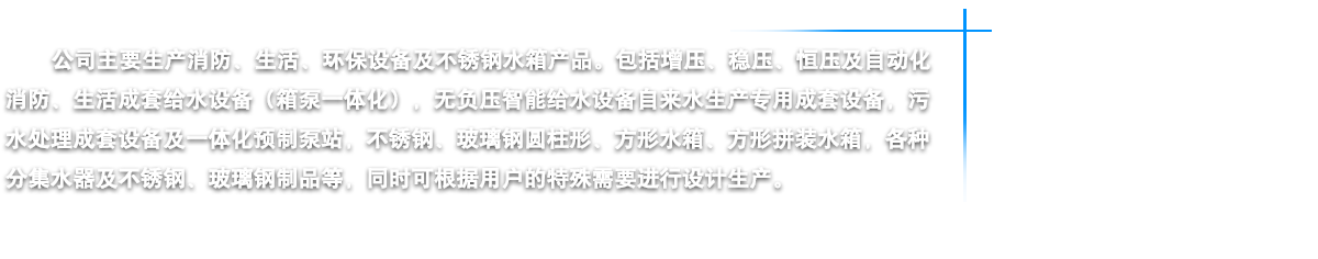 江蘇燁達(dá)環(huán)保設(shè)備有限公司坐落在江蘇省鹽城市建湖縣城,東臨黃海之濱,背倚蘇北平原,處于長三角經(jīng)濟(jì)一體化和江蘇沿海開發(fā)兩個國家級戰(zhàn)略疊加區(qū)域內(nèi),素有“水鄉(xiāng)明珠”美稱。我公司鑒定走“產(chǎn)、學(xué)、研”相結(jié)合的路子,是江蘇省供水設(shè)備行業(yè)的大型企業(yè)。公司以“一流的管理,一流的研發(fā)設(shè)計,一流的質(zhì)量意識,一流的售后服務(wù)”為宗旨,嚴(yán)格控制原材料質(zhì)素,講求“品質(zhì)是企業(yè)的生命力”的理念,嚴(yán)把質(zhì)量關(guān),從而為客戶提供優(yōu)質(zhì)的供水設(shè)備。公司主要生產(chǎn)消防、生活、環(huán)保設(shè)備及不銹鋼水箱四大類產(chǎn)品。包括增壓、穩(wěn)壓、恒壓及自動化消防、生活成套給水設(shè)備(箱泵一體化),無負(fù)壓智能給水設(shè)備自來水生產(chǎn)專用成套設(shè)備,污水處理成套設(shè)備及一體化預(yù)制泵站,不銹鋼、玻璃鋼圓柱形、方形水箱、方形拼裝水箱,各種分集水器及不銹鋼、玻璃鋼制品等,同時公司可根據(jù)用戶的特殊需要進(jìn)行設(shè)計生產(chǎn)。燁達(dá)人將以科學(xué)的管理、精湛的技術(shù)、可靠的質(zhì)量、優(yōu)良的品質(zhì)向社會各界服務(wù),我們始終坦誠相見,我們當(dāng)然走在最前面······ |